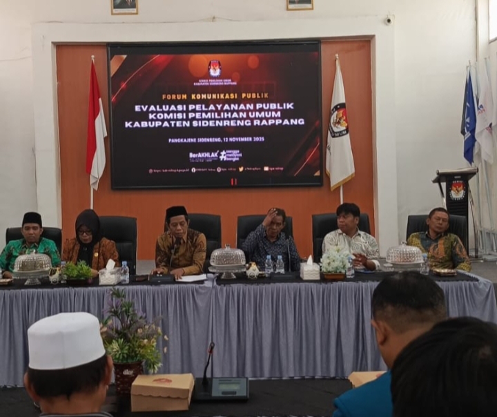 SIDRAP, MERPOS — Komisi Pemilihan Umum (KPU) Kabupaten Sidenreng Rappang (Sidrap) menggelar Forum Komunikasi Publik dengan tema evaluasi pelayanan publik, Rabu (12/11/2025). Kegiatan ini menjadi ajang diskusi terbuka antara KPU dan berbagai elemen masyarakat guna meningkatkan kualitas layanan publik di bidang kepemiluan.