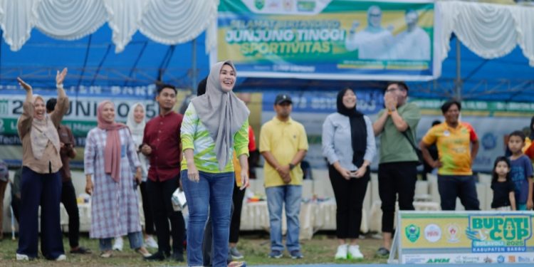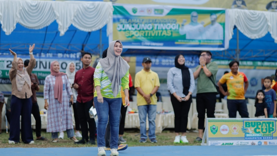 BARRU, MERPOS – Bupati Barru, Andi Ina Kartika Sari, membuka Turnamen Bola Voli Bupati Cup II Kabupaten Barru Tahun 2025, di Lapangan IVO Lapang, Mangempang, Kecamatan Barru, Sabtu (28/6/2025).