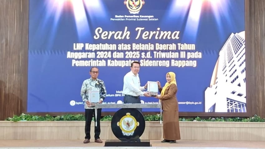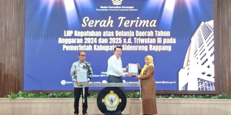 SIDRAP, MERPOS – Badan Pemeriksa Keuangan (BPK) RI Perwakilan Provinsi Sulawesi Selatan menyerahkan Laporan Hasil Pemeriksaan (LHP) Kepatuhan atas Belanja Daerah Tahun Anggaran 2024 dan 2025 sampai dengan Triwulan III kepada Pemerintah Kabupaten Sidrap di Ruang Auditorium Lantai 2, Kantor BPK RI Sulawesi Selatan, Makassar, Senin (19/1/2026).