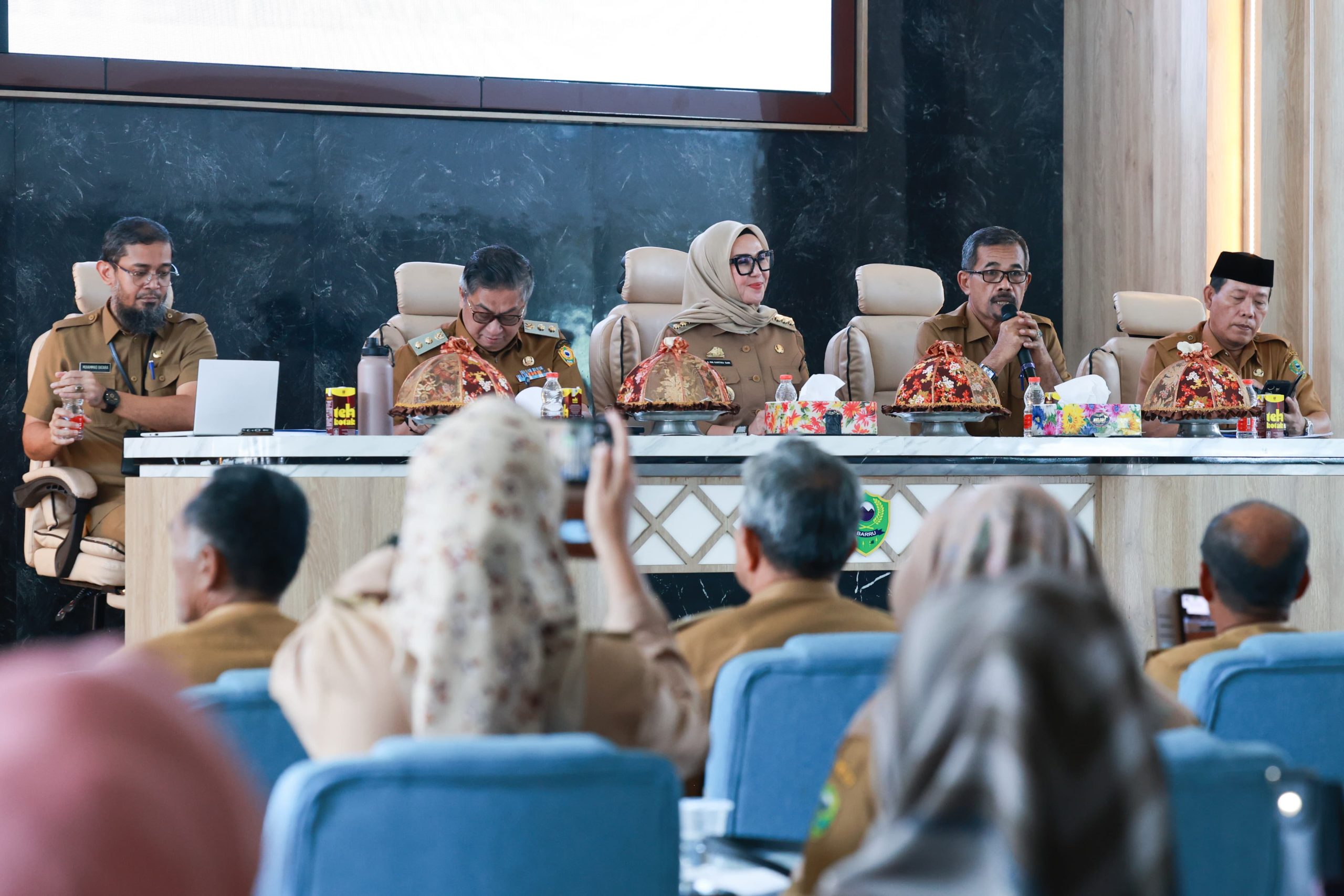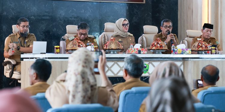 BARRU, MERPOS – Bupati Barru Andi Ina Kartika Sari, SH., M.Si bersama Wakil Bupati Barru Dr. Ir. Abustan A. Bintang, M.Si menghadiri kegiatan Monitoring dan Evaluasi (Monev) Pekerja Keagamaan, di Baruga Pettu Adae Lantai VI MPP Kantor Bupati Barru, Senin (19/5/2025).