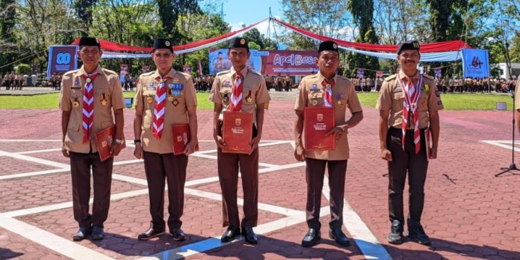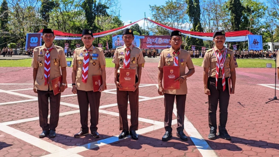 Penghargaan diserahkan pada Apel Besar Gerakan Pramuka Tingkat Kwartir Daerah Sulawesi Selatan dalam rangka peringatan Hari Pramuka ke-64, di Lapangan Upacara Kantor Bupati Barru, Kamis (14/8/2025).