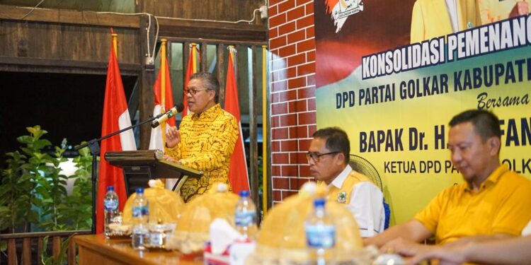 PAREPARE, MNC – Ketua Golkar Sulsel, Taufan Pawe memimpin Konsolidasi Pemenangan Pemilu 2024 Partai Golkar Selayar, di Sunari Beach Resort Selayar, Rabu malam, 3 Mei 2023.