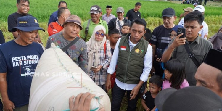 SIDRAP, MERPOS – Bupati Sidenreng Rappang (Sidrap) Syaharuddin Alrif melaksanakan panen Indeks Pertanaman (IP) 300 di Kelurahan Majjelling, Kecamatan Maritengngae, Jumat (18/12/2025).