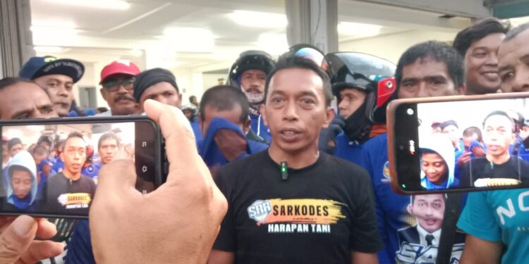 SIDRAP, MERPOS — Sekira 500-an pebemor (becak motor) bersama ratusan relawan dan simpatisan mengantar Bakal Calon Bupati Kabupaten Sidrap, Syaharuddin Alrif mendaftar di Partai Persatun Indonesia (Perindo) dan Partai Persatuan Pembangunan (PPP) setempat, Senin (13/5/2024).