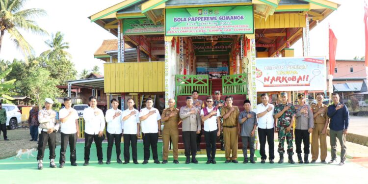 SOPPENG, MNC — Direktorat Narkoba Polda Sulawesi Selatan yang dipimpin Kabag Bin Ops Dit Narkoba Polda Sulsel, Kompol Ivan Wahyudi S.H.,S.I.K beserta 6 orang rekan tim melaksanakan kunjungan kerja, di Polres Soppeng dalam rangka pemantauan Kampung Tangguh Anti Narkoba, tepatnya Bola Mapparewe Sumange di Desa Lompulle, Kecamatan Ganra, Kabupaten Soppeng, Selasa (22/8/2023).