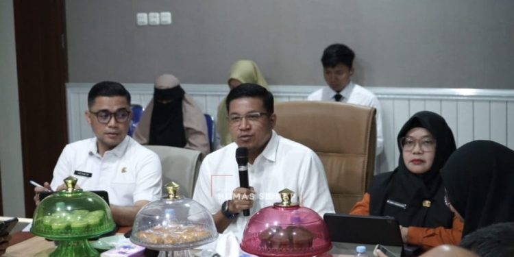 Sekretaris Daerah Kabupaten Sidrap, Andi Rahmat Saleh, memimpin rakor didampingi Kepala BPS Kabupaten Sidrap Andi Asmarani, serta Kepala Badan Perencanaan Pembangunan, Riset, dan Inovasi Daerah (Bapperida) Herwin.