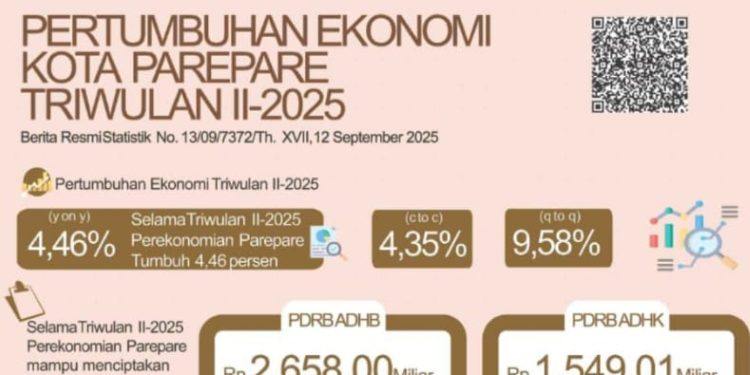 PAREPARE, MERPOS – Perekonomian Kota Parepare menunjukkan perkembangan yang menggembirakan. Badan Pusat Statistik (BPS) Kota Parepare mencatat, pada Triwulan II-2025 perekonomian tumbuh sebesar 4,46 persen (year on year/yoy). Angka ini menjadi sinyal positif bagi keberlanjutan pembangunan dan iklim usaha di kota jasa ini.