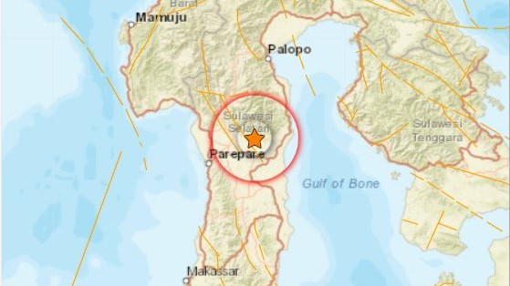 Titik koordinat gempa berada pada 4.13 lintang selatan dan 119.54 bujur timur, atau sekitar 16 kilometer barat daya Kota Parepare.