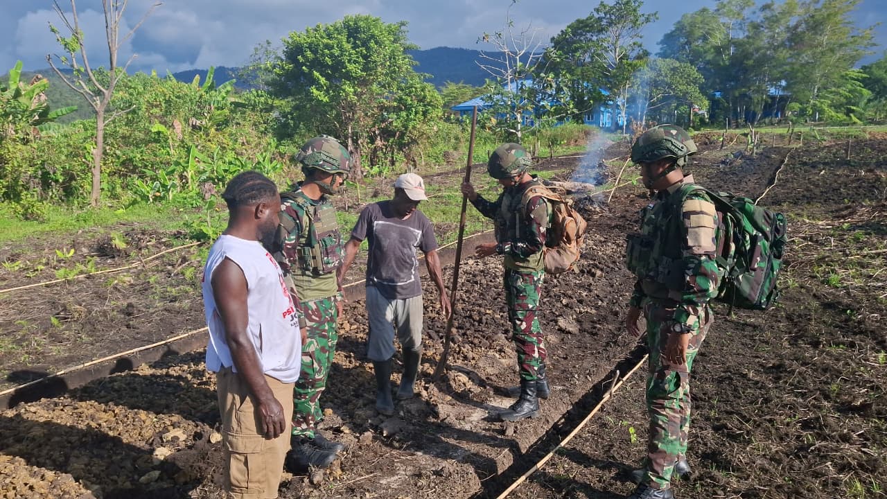 Tidak hanya berdiskusi, personel Satgas juga turun langsung membantu warga menyiapkan lahan pertanian, mulai dari membersihkan area tanam hingga membantu pengolahan tanah. Kehadiran Personel Satgas disambut dengan penuh antusias oleh para petani yang merasa terbantu, baik secara tenaga maupun pengetahuan.