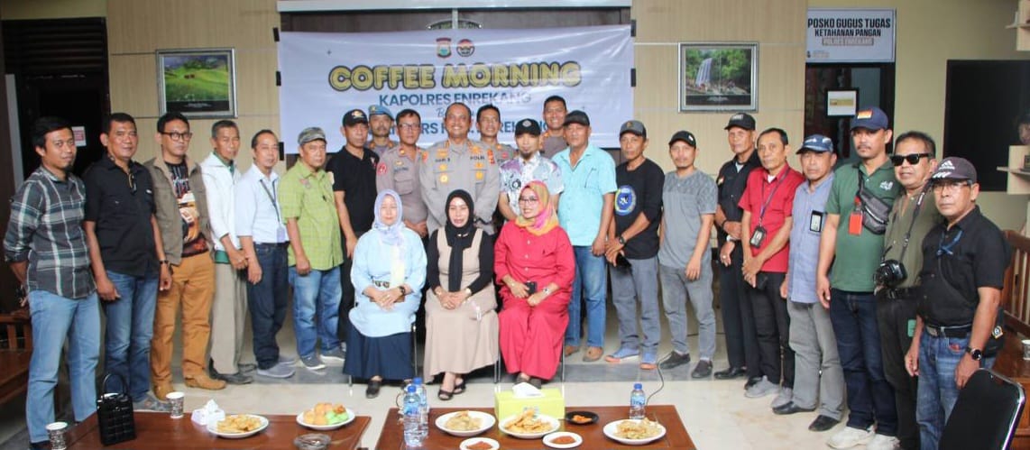 ENREKANG, MERPOS – Kapolres Enrekang AKBP Hari Budiyanto, S.H., S.I.K., M.H. menggelar Silaturahmi Coffee Morning bersama sejumlah Pejabat Utama (PJU) Polres Enrekang, antara lain Kabag SDM, Kabag Ren, Kasat Lantas, Kasat Intelkam, Kasat Samapta, Kasi Humas, dan Kasi Propam, serta beberapa anggota satuan lainnya dan empat organisasi Pers di Bumi Massenrempulu.