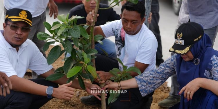SIDRAP, MERPOS – Bupati Sidenreng Rappang (Sidrap), Syaharuddin Alrif, memimpin penanaman pohon alpukat di sepanjang jalan depan Kompleks SKPD Sidrap, Kelurahan Batu Lappa, Kecamatan Watang Pulu, Jumat sore (9/1/2026).