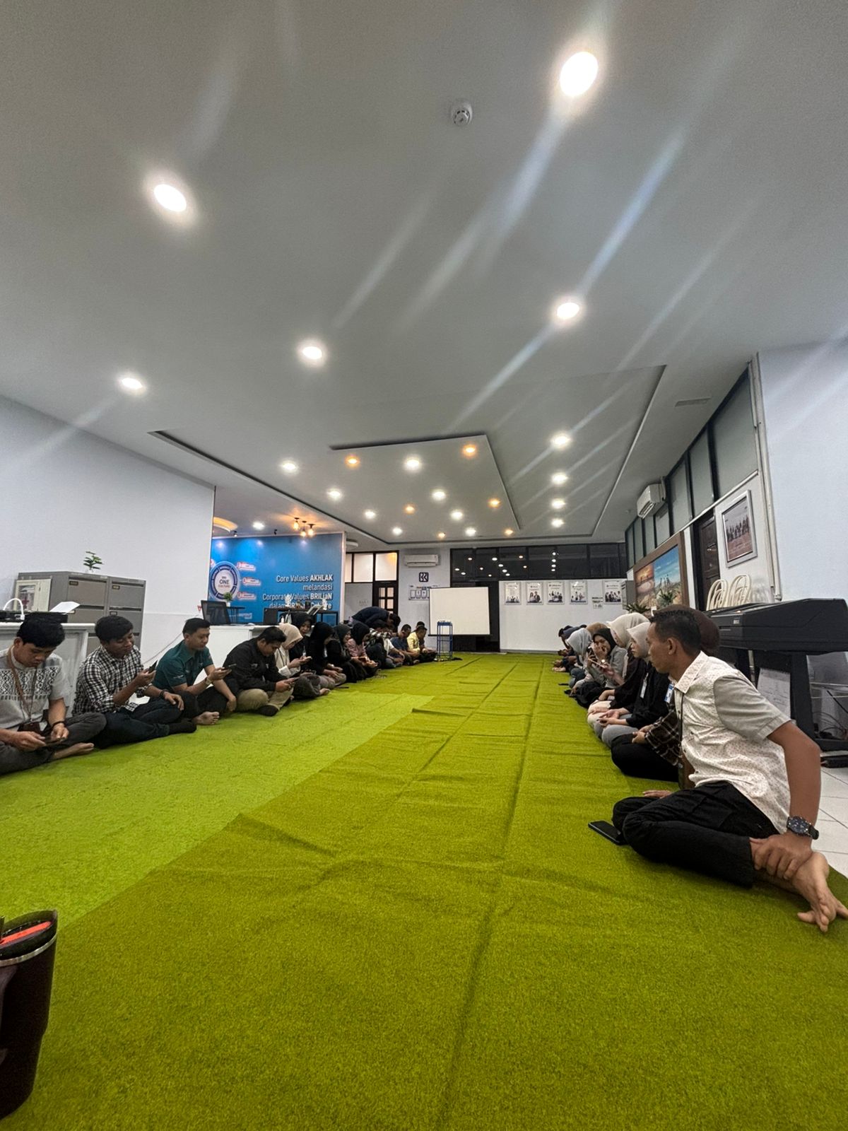 Suasana pengajian berlangsung khidmat namun penuh keakraban. Para pekerja duduk bersama dengan tertib, menjadikan kegiatan ini tidak hanya sebagai agenda keagamaan rutin, tetapi juga sebagai sarana mempererat silaturahmi di tengah padatnya aktivitas pelayanan perbankan.