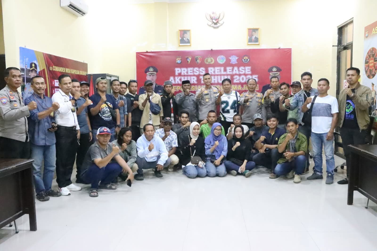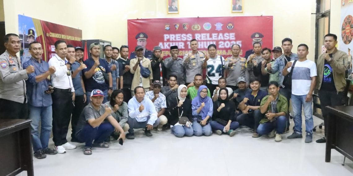 Press release tersebut dipimpin langsung oleh Kapolres Majene, AKBP Muhammad Amiruddin, S.I.K., didampingi Wakapolres Majene Kompol Agussalim Arsyad, serta dihadiri para pejabat utama Polres Majene. Sejumlah awak media lokal turut hadir untuk mengikuti pemaparan data dan sesi tanya jawab yang berlangsung secara interaktif.