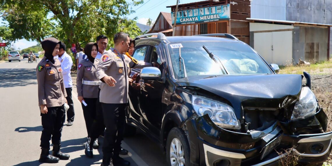 SIDRAP, MERPOS – Kapolres Sidrap, AKBP Fantry Taherong, menunjukkan kesigapannya dalam memberikan pertolongan pada sebuah kecelakaan lalu lintas yang terjadi pada Senin (29/07/24). Kecelakaan tersebut melibatkan dua kendaraan roda empat di jalan poros Sidrap-Soppeng, yang menyebabkan dua orang pengendara mengalami luka.