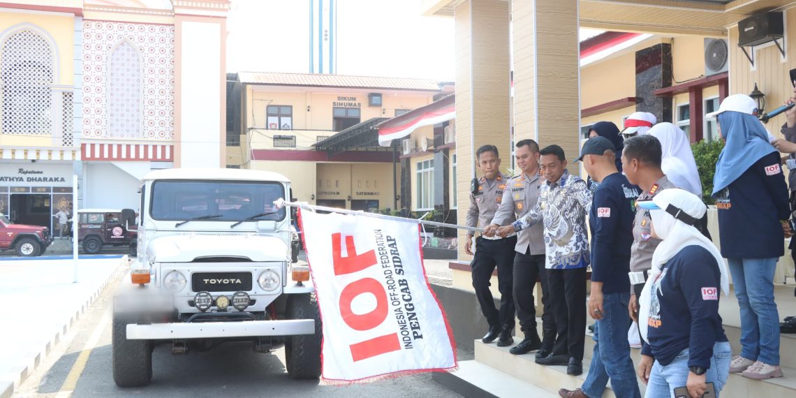 SIDRAP, MERPOS – Dalam rangka mendukung kegiatan Bhayangkara Merdeka yang diselenggarakan Polda Sulsel, Kapolres Sidrap AKBP Dr. Fantry Taherong, S.H., S.I.K., M.H bersama Bupati Sidrap H. Syaharuddin Alrif, S.I.P., M.M secara resmi melepas keberangkatan puluhan mobil Offroader dari Indonesia Off-Road Federation (IOF) Pengcab Sidrap, Kamis (21/8/2025).