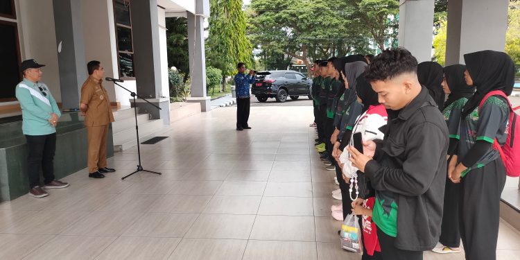 Acara pelepasan berlangsung di halaman Kantor Bupati Pinrang, untuk mengikuti ajang Pra Pekan Olahraga Provinsi (Pra Porprov) Pencak Silat, digelar 28 Oktober – 1 November 2025, di GOR Mandiri Kota Parepare