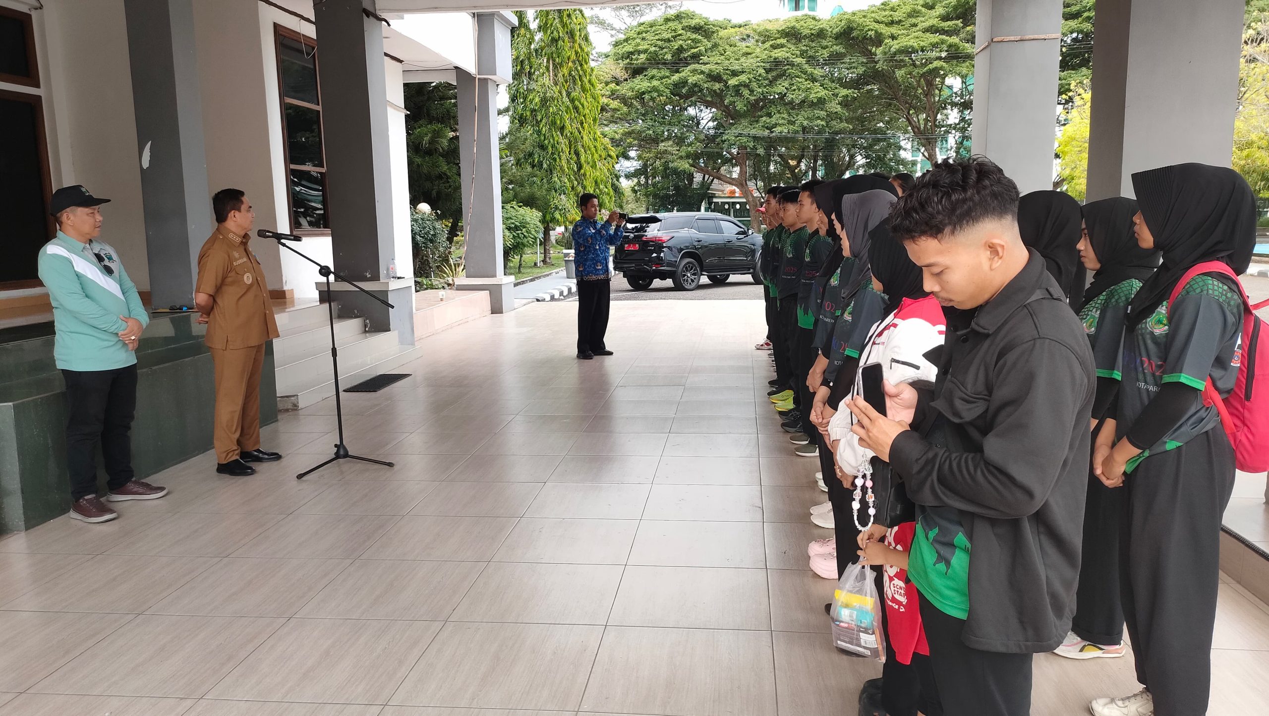 Acara pelepasan berlangsung di halaman Kantor Bupati Pinrang, untuk mengikuti ajang Pra Pekan Olahraga Provinsi (Pra Porprov) Pencak Silat, digelar 28 Oktober – 1 November 2025, di GOR Mandiri Kota Parepare