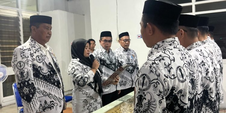 SIDRAP, MERPOS – Ketua PGRI Kabupaten Sidrap sekaligus Wakil Bupati Sidrap, Nurkanaah, memimpin pelantikan pengurus PGRI dari lima cabang secara serentak, Rabu (15/10/2025) malam.