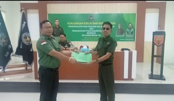 PANGKEP, MERPOS – Dewan Pengurus Daerah (DPD) Persatuan Putra Putri Angkatan Darat (P3AD) Sulawesi Selatan, melakukan kunjungan kerja (Kunker) dan konsolidasi, bertema “Bermoral dan Bermartabat, Satukan Potensi Anak Angkatan Darat” ini digelar, di Aula Makodim 1421/Pangkep, Senin (24/2/2025).