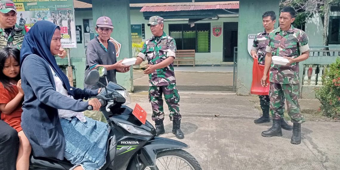 LUWU, MERPOS -Jajaran TNI-AD dari Koramil 1403-02 Suli, Kabupaten Luwu melaksanakan kegiatan sosial Jum’at Berkah, di depan kantor Koramil 1403-02 Suli, Jum’at (9/5/2025).