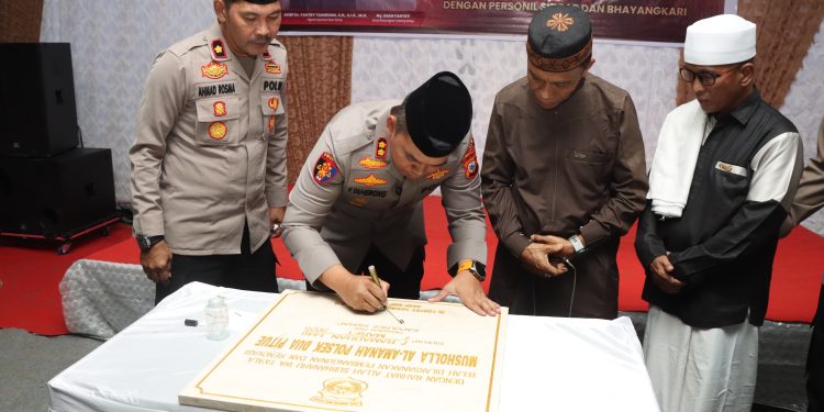 SIDRAP, MERPOS – Kapolres Sidrap, AKBP Fantry Taherong meresmikan Musholla Al-Amanah yang berada di lingkungan Polsek Dua Pitue, Kabupaten Sidrap, pada Jumat (07/03/25). Acara peresmian ini menjadi momentum penting bagi anggota kepolisian dan masyarakat sekitar dalam meningkatkan keimanan serta mempererat kebersamaan.