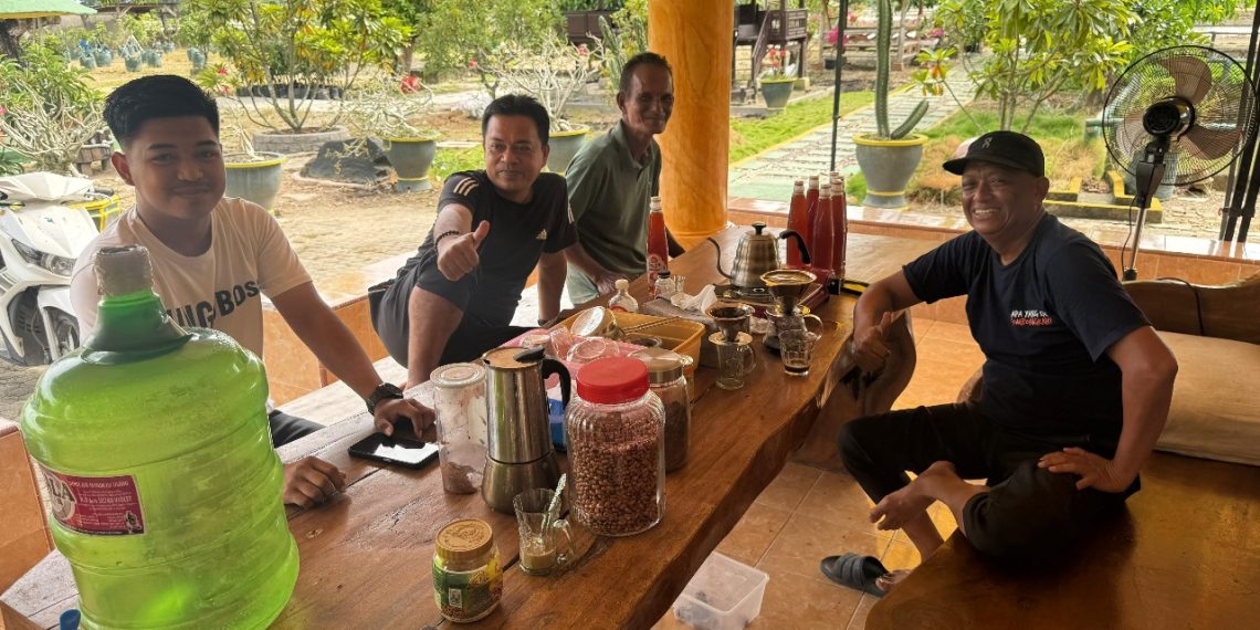 Suasana semakin meriah dengan kehadiran H. Heidir, owner Nyala Water. Keduanya menikmati kopi yang dicampur madu Pariwang, sambil berbincang akrab. H. Heidir memuji kelezatannya, sementara H. Pilli menambahkan, “Untuk yang menderita diabetes, insya Allah, kopi dan madu asli Pariwang ini bisa membantu proses penyembuhan.”