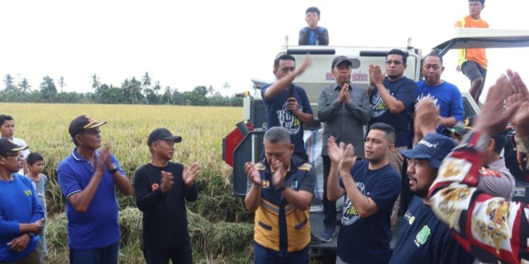 “Alhamdulillah, panen raya ini menjadi bukti kerja keras dan kekompakan petani kita. Kemarin saya bersama jajaran tanam perdana di sini, jadi saya kembali lagi ke tempat ini untuk panen raya,” ujarnya.