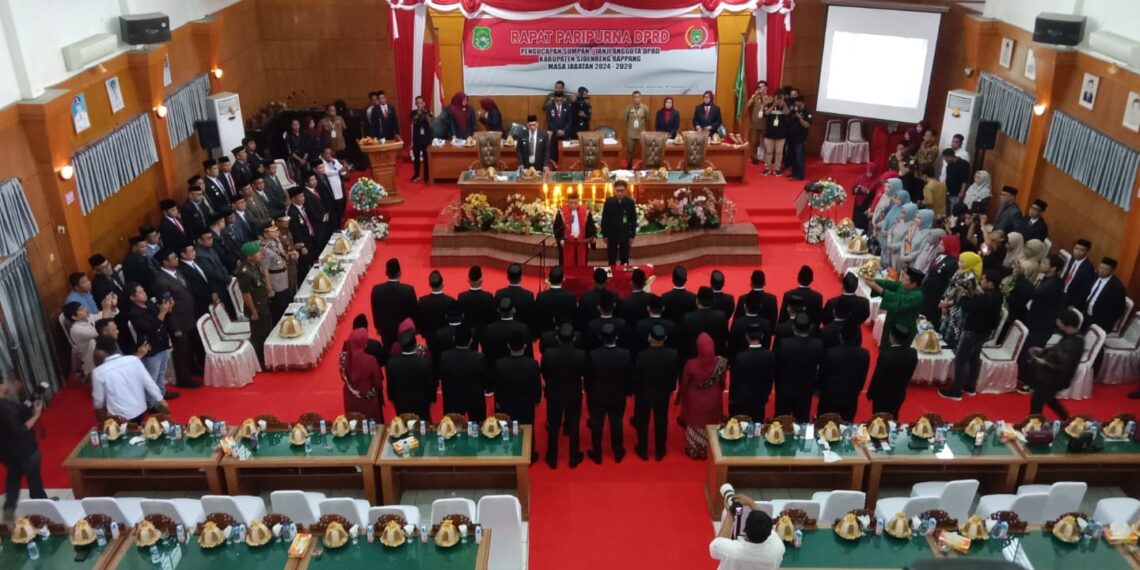 SIDRAP, MERPOS – Sebanyak 35 anggota Dewan Perwakilan Rakyat Daerah (DPRD) Kabupaten Sidenreng Rappang, Sulawesi Selatan resmi dilantik dan diambil sumpahnya untuk masa jabatan 2024-2029, Senin (30/9/2024).