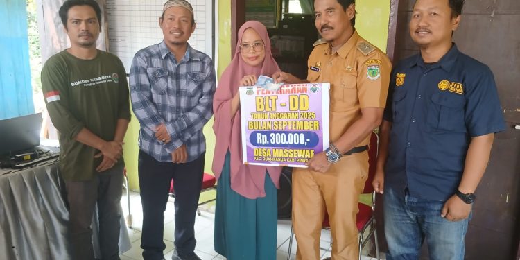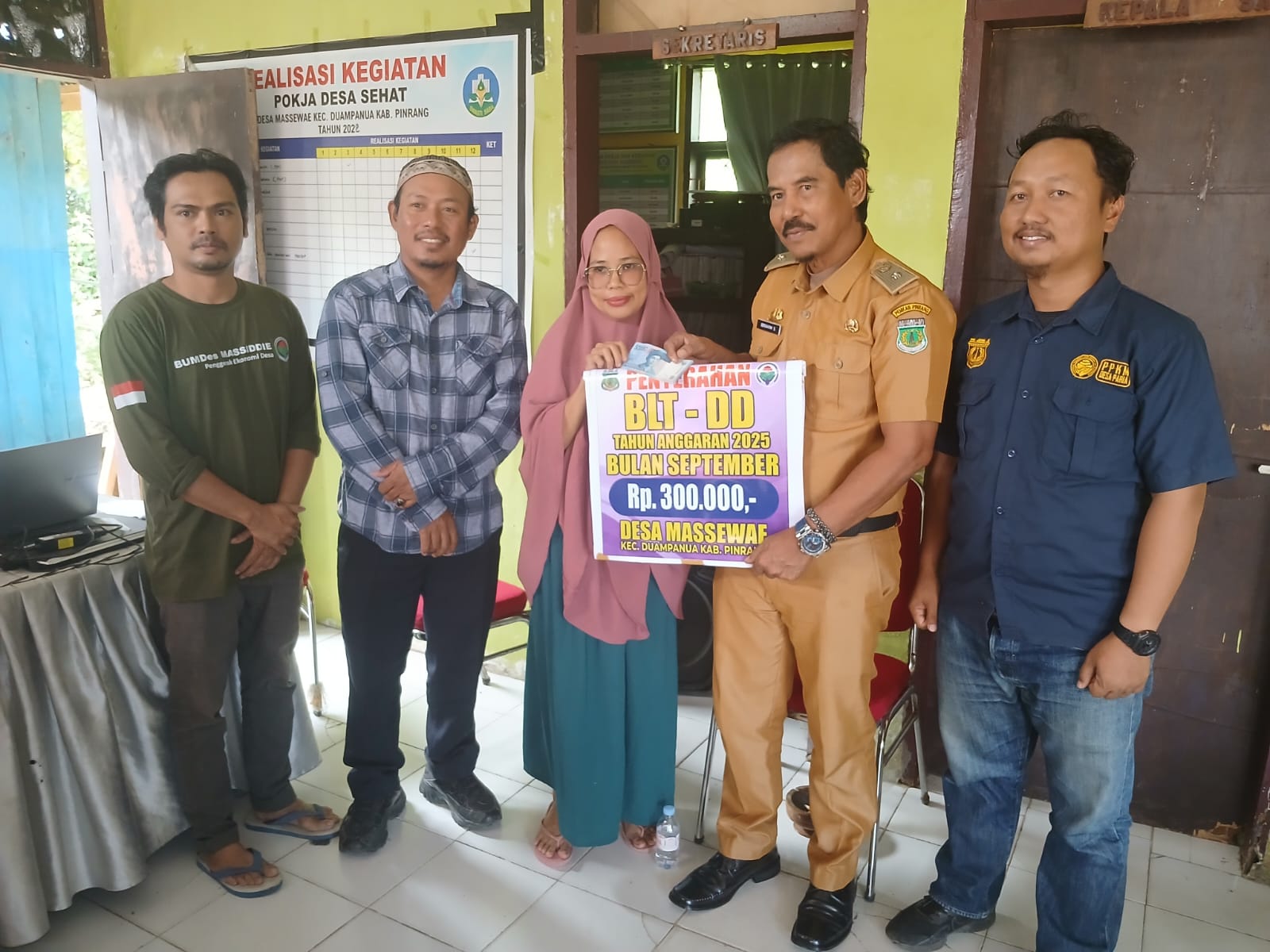 PINRANG, MERPOS – Pemerintah Desa Massewae, Kecamatan Duampanua, kembali menyalurkan Bantuan Langsung Tunai (BLT) kepada masyarakat yang berhak menerima. Sebanyak 32 orang warga tercatat sebagai penerima bantuan pada penyaluran kali ini.
