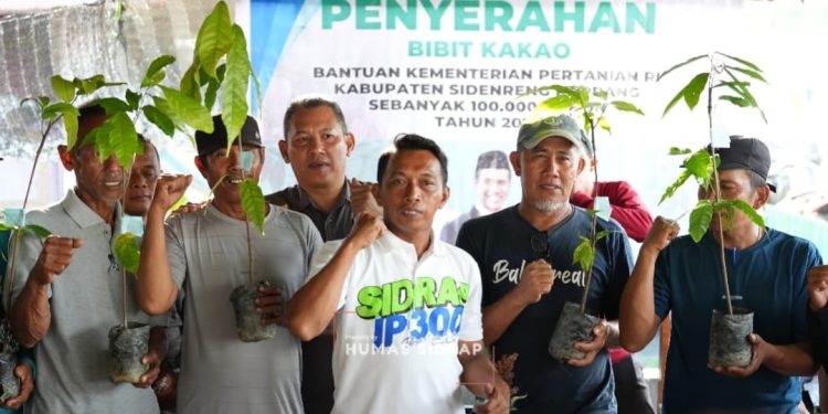 Bibit kakao tersebut diserahkan langsung Bupati Sidrap Syaharuddin Alrif kepada kelompok tani dalam kegiatan yang berlangsung di kediaman Agus Laugu, Kelurahan Batu, Kecamatan Pitu Riase.