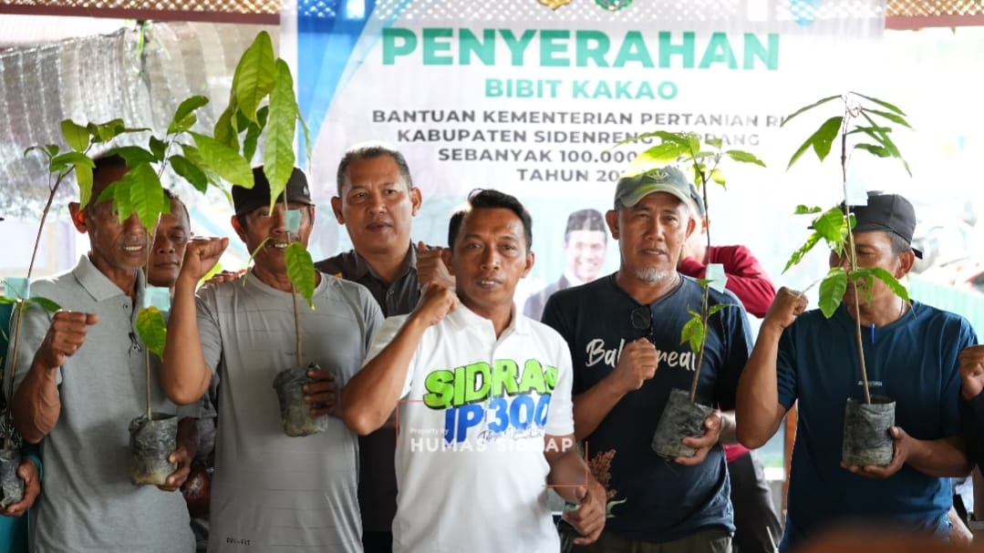 Bibit kakao tersebut diserahkan langsung Bupati Sidrap Syaharuddin Alrif kepada kelompok tani dalam kegiatan yang berlangsung di kediaman Agus Laugu, Kelurahan Batu, Kecamatan Pitu Riase.