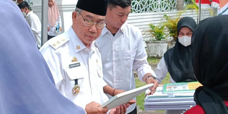 PAREPARE, MNC — Wakil Wali Kota Parepare H. Pangerang Rahim, mewakili Wali Kota HM Taufan Pawe, serahkan secara simbolos bantuan Pemerintah Kota (Pemkot) Parepare, bantuan Beras Peduli tahun anggaran 2023, yang diserahkan di depan Rujab Wali Kota Kamis (6/4/2023).