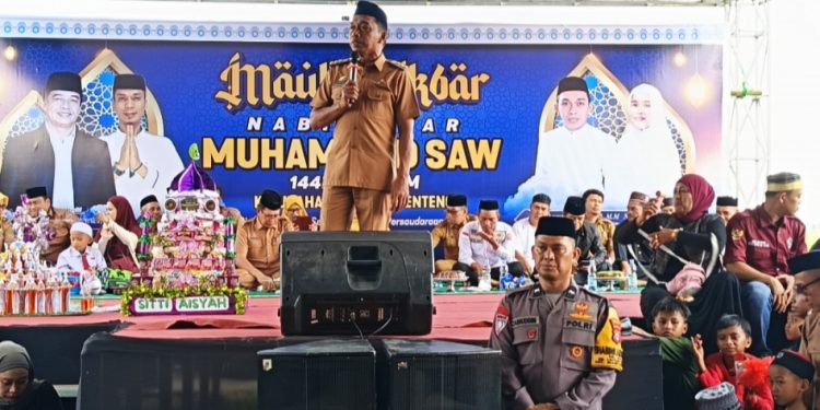 SIDRAP, MERPOS – Bupati Sidrap, H. Syaharuddin Alrif, bersama Wakil Bupati, Nurkanaah, menghadiri Peringatan Maulid Nabi Muhammad SAW 1447 Hijriah di Lapangan Hamelli, Jl. Badak, Kelurahan Lautang Benteng, Kecamatan Maritengngae, Senin (29/9/2025).