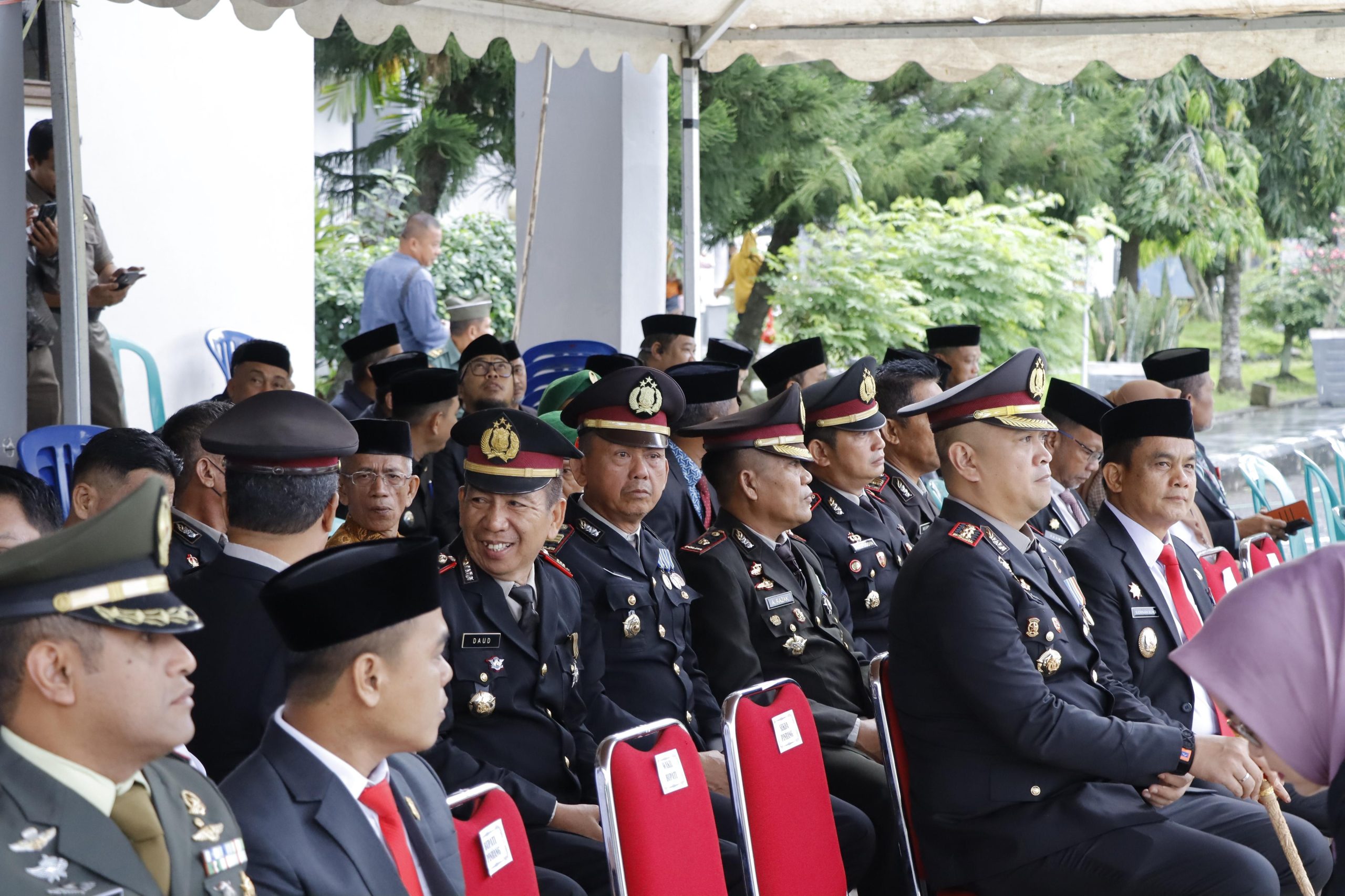 Sejumlah pejabat tinggi daerah tampak hadir, antara lain Wakil Bupati Pinrang Sudirman Bungi, S.I.P, Kapolres Pinrang AKBP Edy Shabara Manggabarani, S.I.K, Dandim 1404/Pinrang Letkol Inf. Abdullah Mahua, M.I.P, Ketua DPRD H. Nasrum Paturusi, Ketua Pengadilan Negeri Pinrang Khaerunisa, SH, serta Kepala Kejaksaan Negeri Agung Bagus Kadek Kusimantara, SH., MH. Selain itu, jajaran pimpinan OPD, PJU Polres dan Kodim, para Camat dan Lurah se-Kabupaten Pinrang juga turut serta dalam upacara.