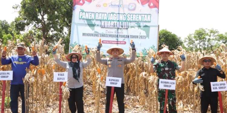 SIDRAP, MERPOS – Polres Sidrap menggelar Panen Raya Jagung Serentak Kuartal III tahun 2025 di lahan seluas 80 are yang terletak di Desa Teppo Kecamatan Tellu limpoe Kabupaten Sidrap, Sabtu (27/9/25) siang