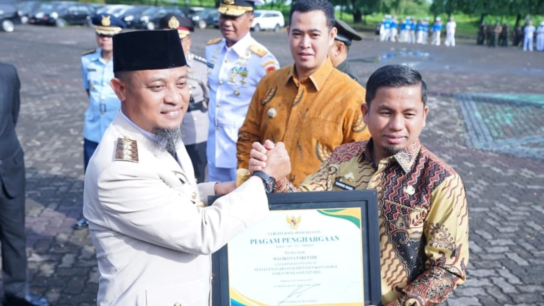 Kota Parepare meraih penghargaan dari Gubernur Sulawesi Selatan, atas keberhasilan Wali Kota dalam mewujudkan Parepare sebagai kota sehat.