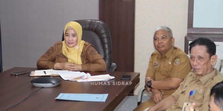 SIDRAP, MERPOS — Wakil Bupati Sidenreng Rappang (Sidrap), Nurkanaah, mengikuti Rapat Koordinasi Pengendalian Inflasi Daerah yang diselenggarakan Kementerian Dalam Negeri Republik Indonesia secara hybrid dari ruang kerjanya, Selasa (3/3/2026).