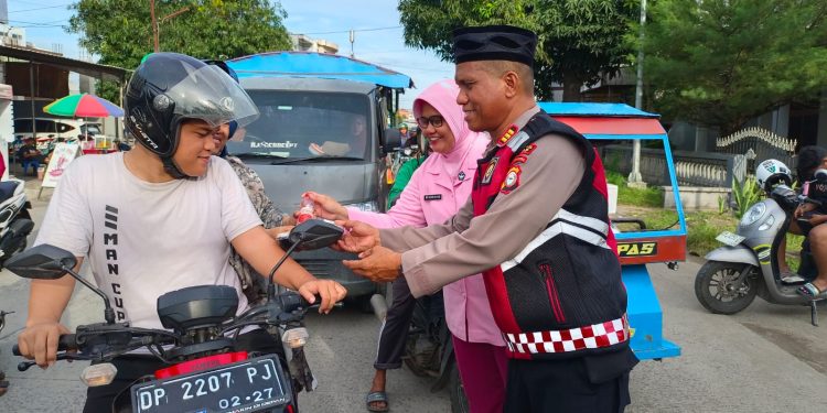 SIDRAP, MERPOS – Dalam semangat berbagi di Bulan Suci Ramadhan, Polres Sidrap kembali menggelar aksi sosial dengan membagikan Takjil kepada masyarakat. Kegiatan ini berlangsung di dua titik strategis di Sidrap menjelang waktu berbuka puasa yang dipimpin Kabag SDM KOMPOL Nurdin dan Kasat Samapta AKP Aiyub. Sabtu (15/03/25)