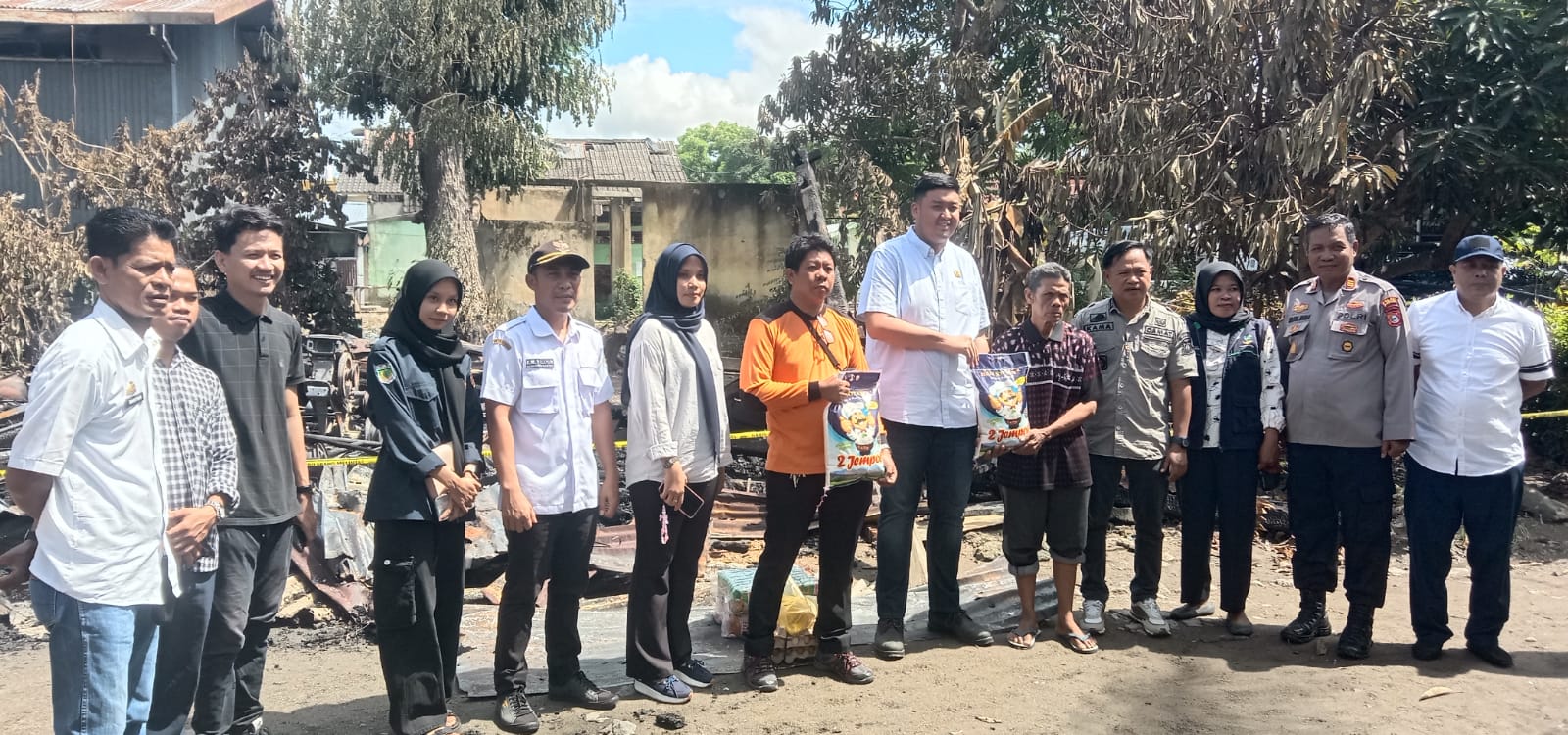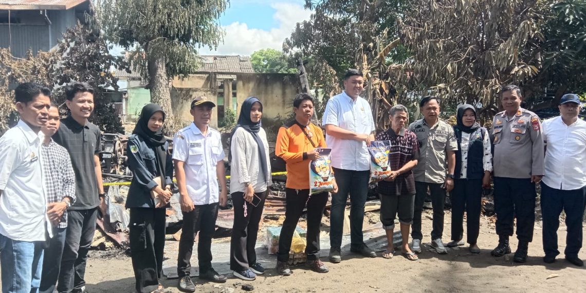 Pada peristiwa itu, turut peduli, Ketua Karang Taruna Kabupaten Pinrang, Andi Ichan Aswad bersama Kabid kedaruratan dan logistik, Jabir, menyerahkan bantuan berupa sembako kepada korban kebakaran. NASRI NONA/MERPOS