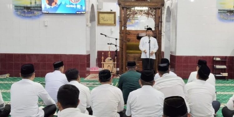 PAREPARE, MERPOS – Wali Kota Parepare, Tasming Hamid membuka pencanangan program Safari Ramadan Pemkot Parepare, di Masjid Raya Kota Parepare, Rabu (5/3/2025). Dihadiri jajaran Pemerintahan Kota dan Forum Komunikasi Pimpinan daerah (Forkopimda) Parepare.