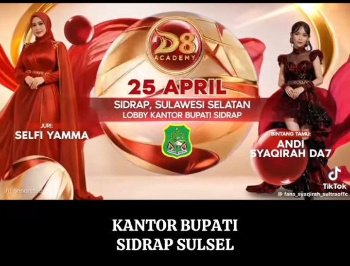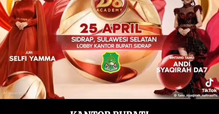 SIDRAP, MERPOS — Indosiar telah merilis jadwal audisi Dangdut Academy (DA) 8 di empat daerah di Indonesia untuk periode April-Mei 2026. Salah satunya, Kabupaten Sidrap, Sulawesi Selatan.