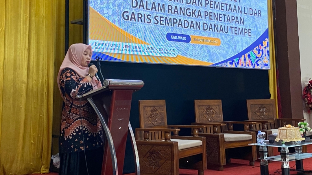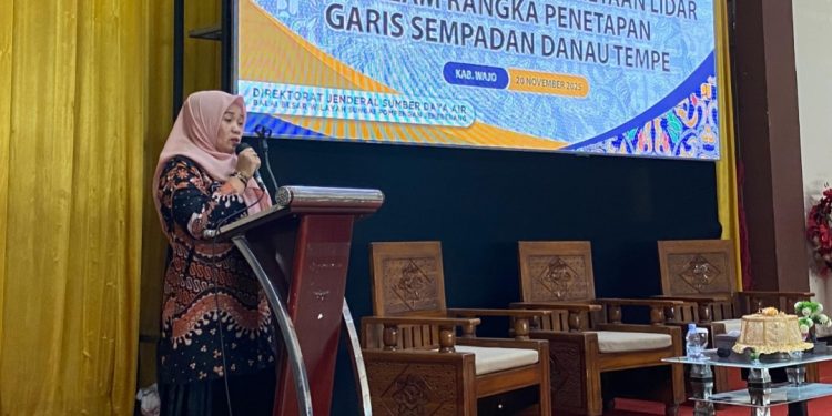 WAJO, MERPOS – Wakil Bupati Sidenreng Rappang (Sidrap) Nurkanaah menghadiri Sosialisasi Hasil Survei Sosial Ekonomi dan Penetapan LiDAR sebagai bagian dari proses penetapan garis sempadan Danau Tempe, Kamis (20/11/2025).