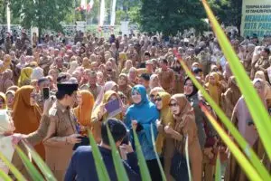 “Saya menyadari sekali, ribuan Aparatur Sipil Negara, ada yang tampak, ada yang tidak tampak, melakukan aktivitas – aktivitas untuk mensejahterakan masyarakat. Ini semua berkat kekuatan kalian, Kekuatan yang saya maksudkan ini, selalu saya sampaikan pada sambutan, kekuatan yang menghasilkan keberhasilan – keberhasilan dari sagala bidang, baik pembangunan Kota, Pendidikan, Kesehatan, dan lainnya. Marilah kita mengabdi pada masyarakat, marilah kita mengabdi pada pemerintahan,” ungkapnya.