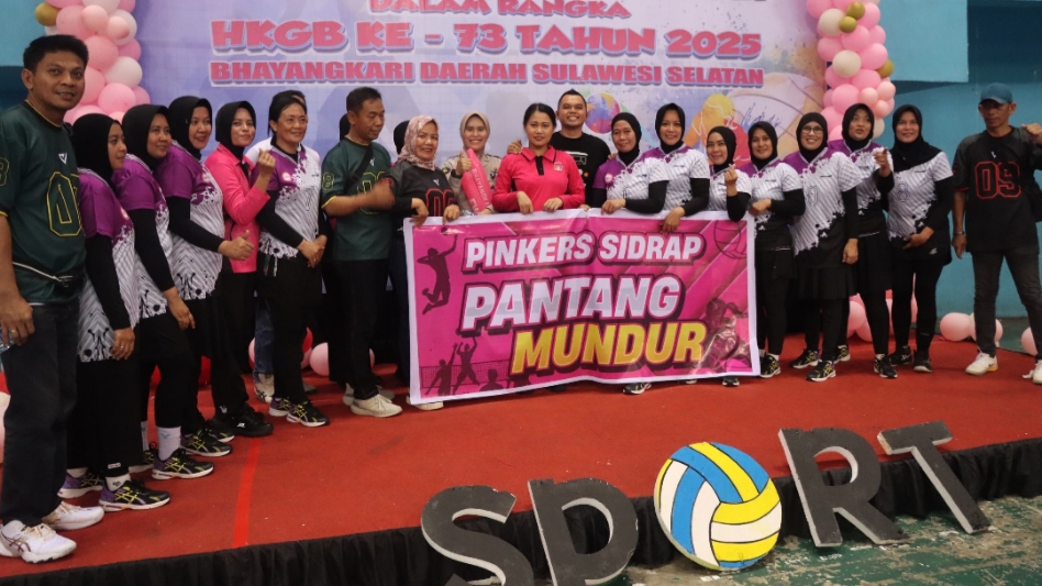 SIDRAP, MERPOS – Kapolres Sidrap Akbp Fantry Taherong menghadiri pembukaan pertandingan Bola Voli Bhayangkari Se-Daerah Sulsel. Kegiatan digelar dalam rangka memperingati Hari Kesatuan Gerak Bhayangkari (HKGB) ke-73 Tahun 2025, yang berlangsung di GOR Sudiang Kota Makassar, Selasa (15/7/25). Pagi