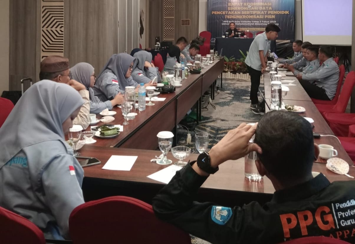 SIDRAP, MERPOS — Universitas Muhammadiyah Sidenreng Rappang (UMS Rappang) melalui Program Pendidikan Profesi Guru (PPG) menyelenggarakan rapat koordinasi terkait sinkronisasi data percetakan sertifikat pendidik yang telah tersinkronisasi dengan sistem PISN (Pangkalan Informasi Sertifikat Nasional).