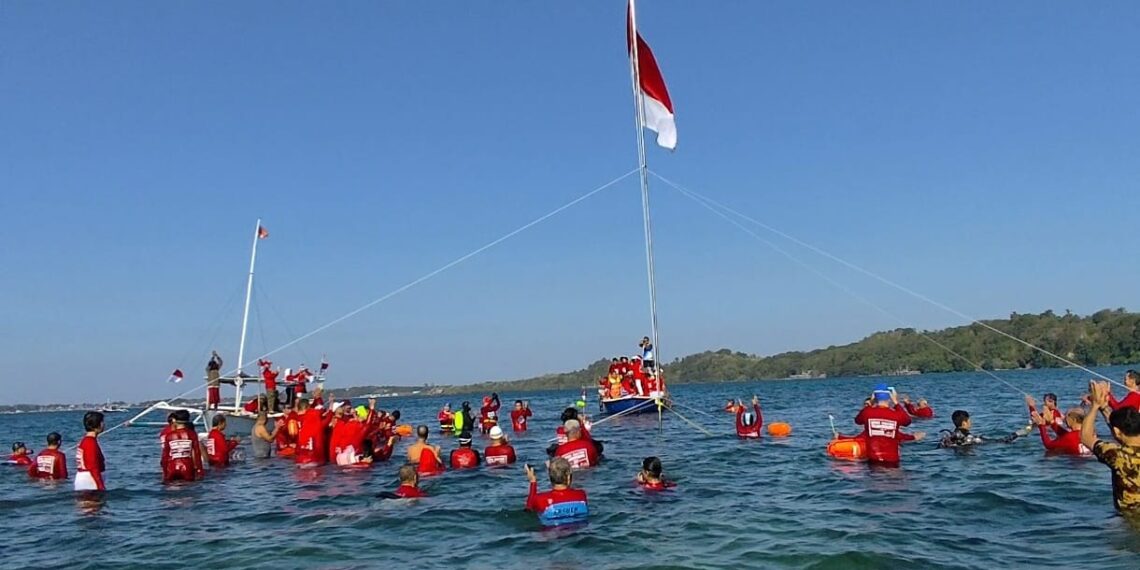 Ija selaku ketua komunitas renang seiya sekata ini memakai baju merah menyiapkan tiga kapal bagi komunitas yang tidak bisa berenang bisa naik perahu menuju Lokasi, kecuali yang bisa bisa berenang sejauh 7 mil arah Lokasi pengibaran bendera.