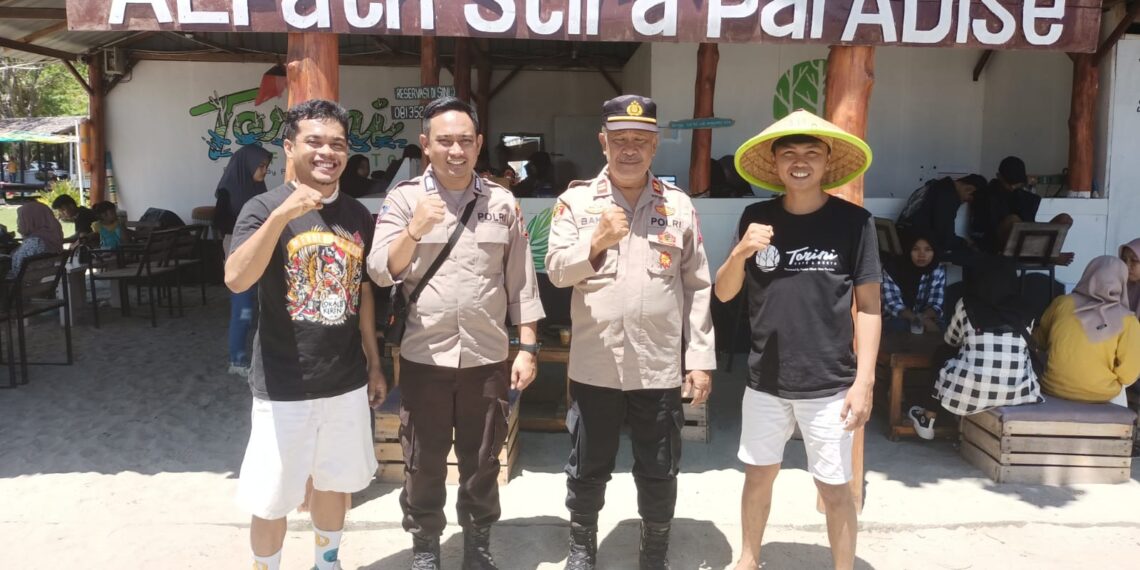 PINRANG, MNC – Kapolsek Duampanua Iptu Bakri memantau Salah satu objek wisata Pantai Alfath Stira Paradise, di Lingkungan Ujung Baru Serang, Kelurahan Data, Kecamatan Duampanua, Kabupaten Pinrang Sulawesi Selatan, Senin (24/4/2023).