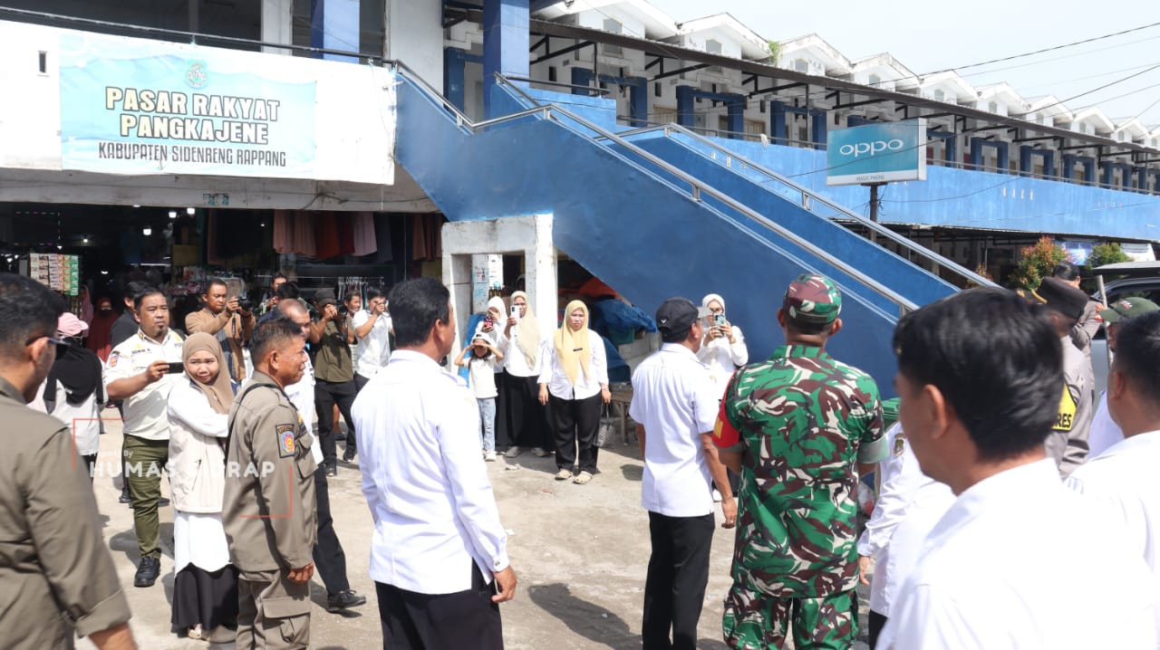 Wakil Bupati Sidrap, Nurkanaah, bersama Forum Koordinasi Pimpinan Daerah (Forkopimda) turun langsung melakukan pemantauan harga dan stok sembako di Pasar Sentral Pangkajene, Kecamatan Maritengngae, Kabupaten Sidrap, Rabu (24/12/2025).