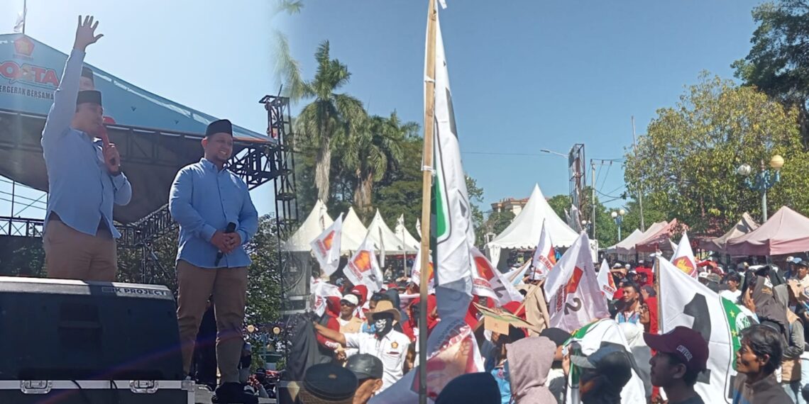 Ribuan pendukung, simpatisan, dan relawan tumpah ruah memadati lokasi, menciptakan suasana yang penuh semangat dan antusiasme tinggi.
